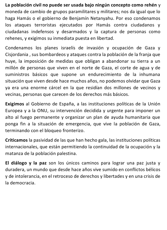 COMUNICADO DE LA CONFEDERACIÓN ESTATATAL DE ASOCIACIONES VECINALES SOBRE EL CONFLICTO EN PALESTINA E ISRAEL